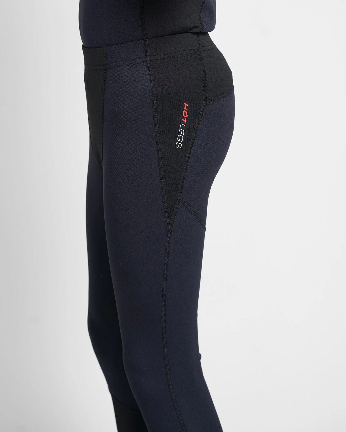 Our ‘hottest’ base layer in the range, these thermal leggings use a combination of two of our most popular fabrics for the utmost comfort and thermal performance. The main ‘heat’ boosting properties derive from its 0.5mm titanium lined neoprene used at the upper front legs, seat and back of legs. This fabric is a clever material that works with your body to regulate your temperature, where the titanium lining reflects heat from your body back onto your body, rather than letting it escape through the fabric. Through combining this ‘Hot’ fabric with our soft and stretchy Polypro™ on panels where you want the maximum movement and breathability, crotch/gusset, waistband and upper sides, these leggings will give unrestricted performance.