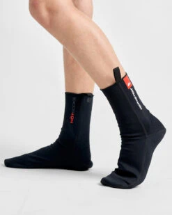 Rooster Hot Socks – a revolution in warmth – a 0.5mm titanium layer that is both comfortable and warm. Wear them under your normal sailing boots for extra warmth – remember layers are better than thickness! Titanium neoprene acts in a similar way to a survival blanket, the titanium impregnated reflective layer is sandwiched between the neoprene and the interior nylon lining, this lining reflects radiated heat back to the body.
