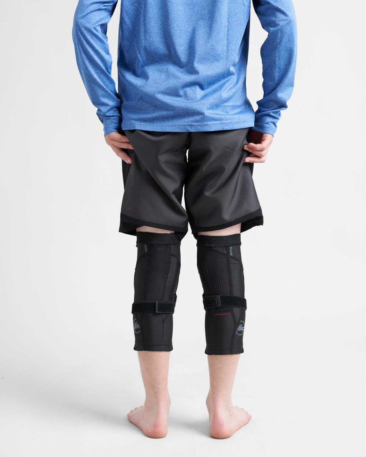 Long length knee pads that extend down to protect part of the shin. A streamlined fit with a silicon rubber elastic webbing strip at the top band and above the calf maintains the position of the knee pads, whilst an additional elastic strap is positioned just below the knee to further secure the pad in place. Comfort is enhanced through stretch panels around the main knee panel to allow stretch where you need it the most and improved movement, with a breathable mesh panel down the back to add breathability to the back of your leg. Durability and protection has been achieved to follow in our ‘Race Armour’ range, with the use of Duratex II at the outer surface and NBR rubber used on the inside – this has minimal water absorption so weight will not be added to the pads when wet, the properties of the rubber also mean that the pad will mould to your body slightly and also adds some shock absorption for those falls!