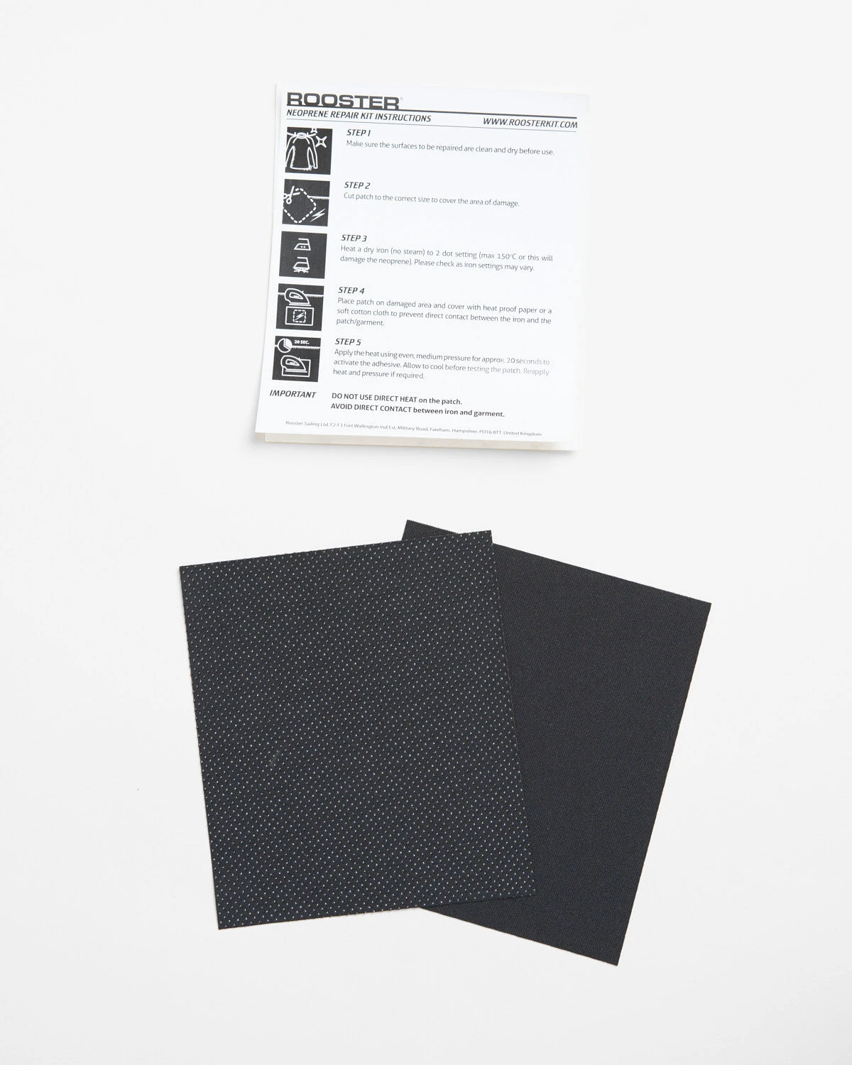 A simple and effective way to repair holes and wearing spots on your Rooster Wetsuit.