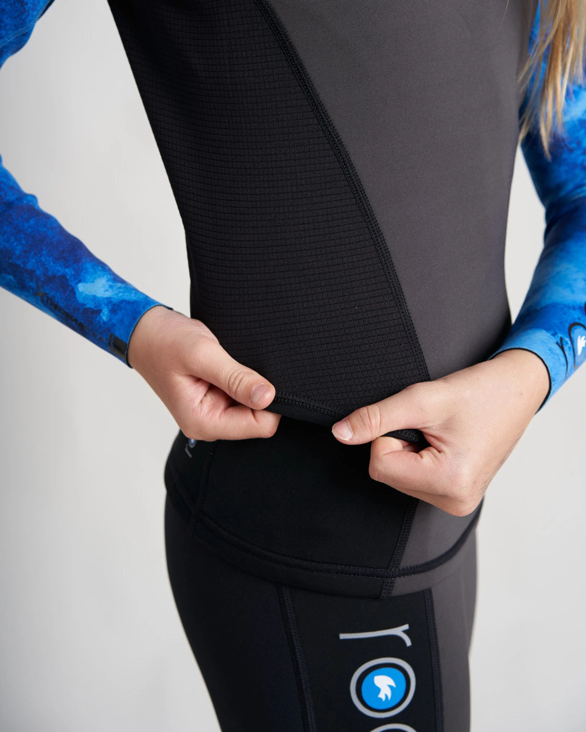 1.5mm ThermaFlexâ„¢ top, specifically designed for ladies, combining a flattering as well as comfortable and manoeuvrable fit with our all over print down the arms and across the chest making the top bright and attractive.
